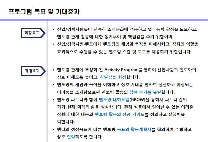 오리엔테이션 워크샵, 멘토/멘티 도입교육